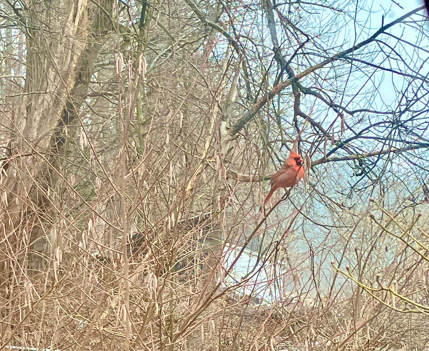 a cardinal perches